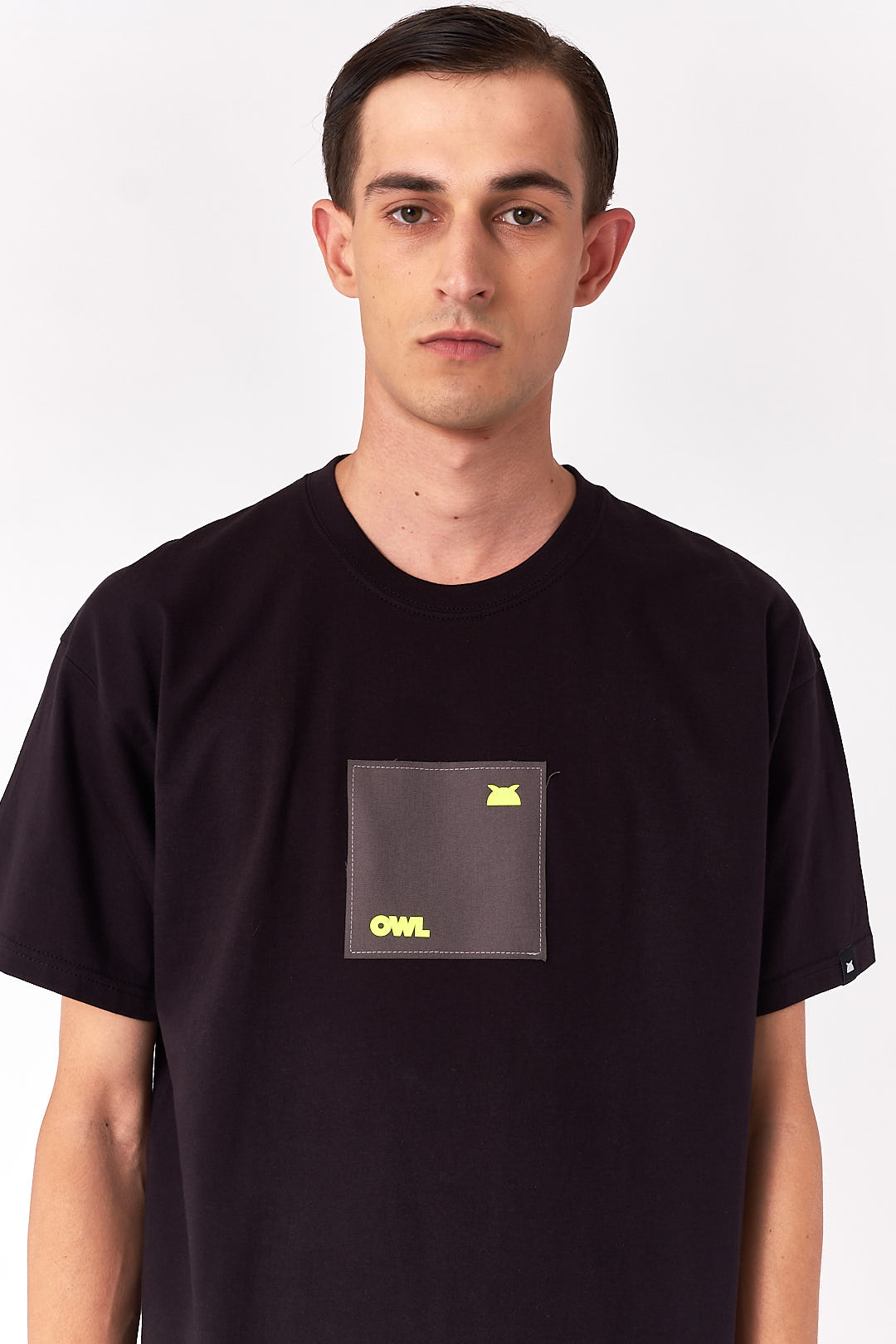 Square front panel with logo details