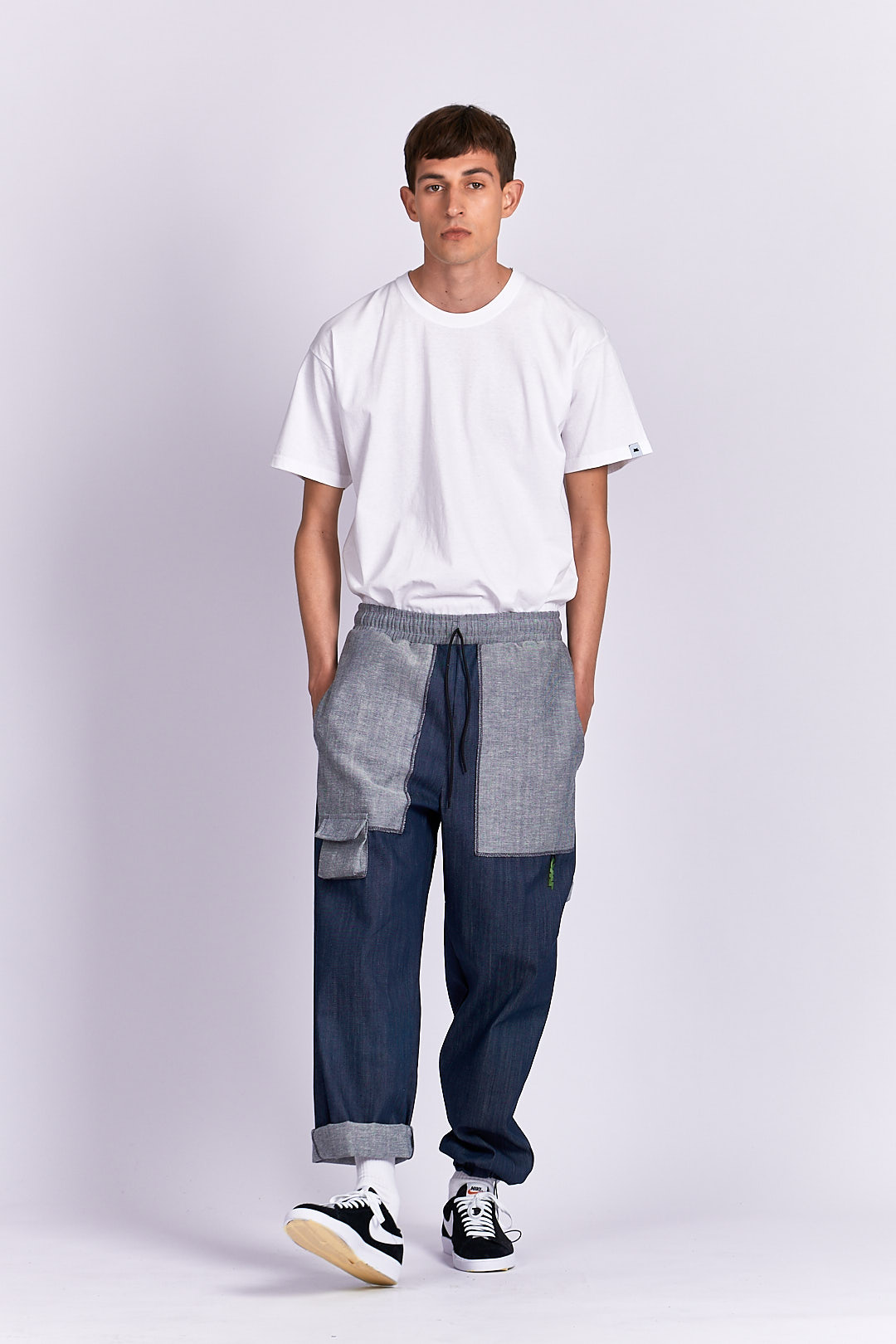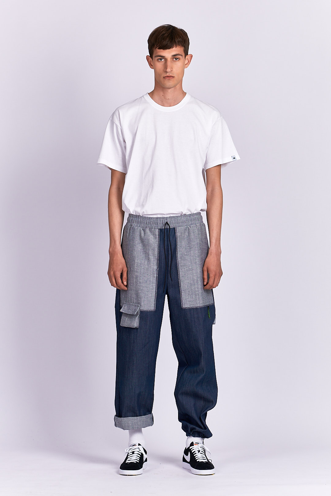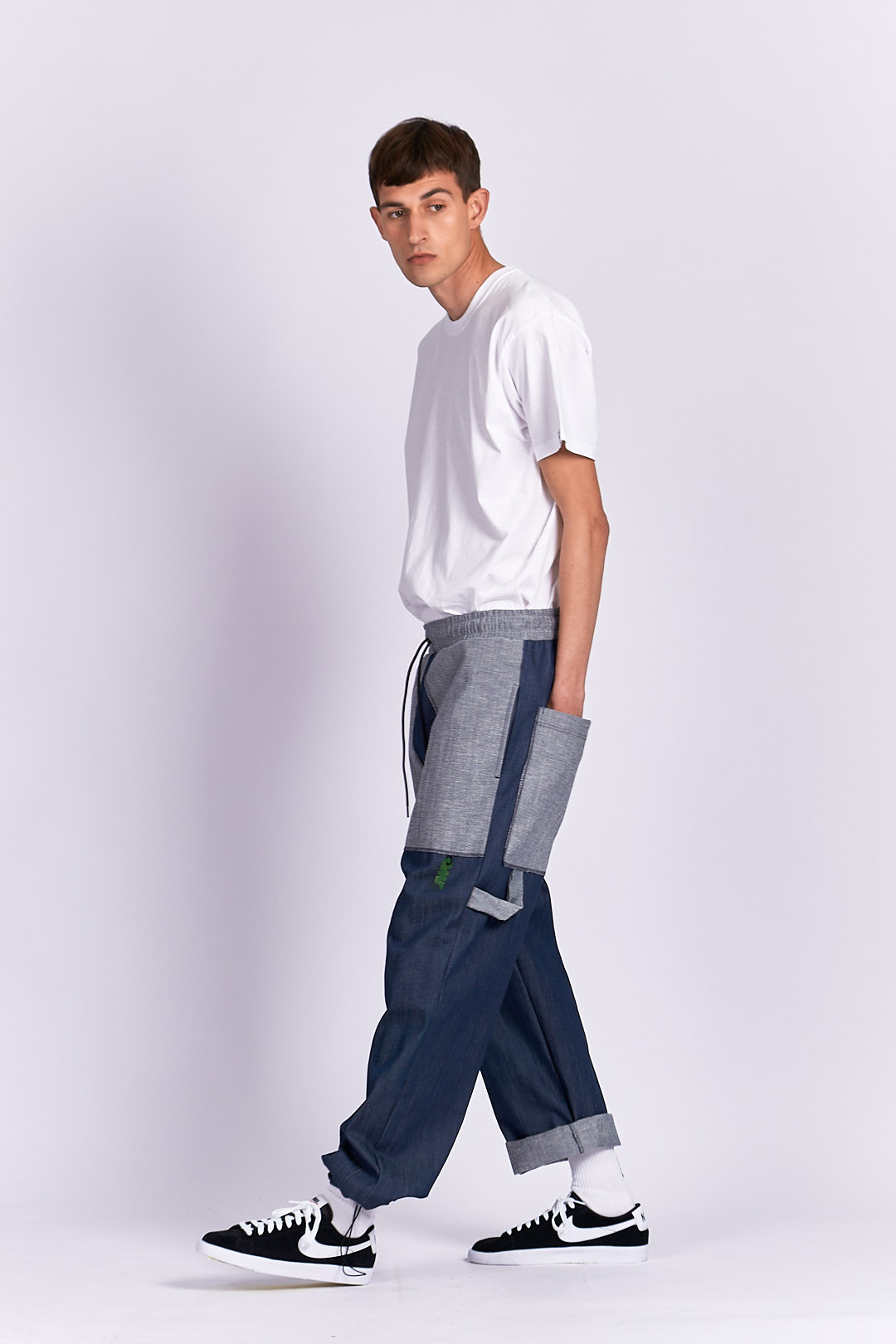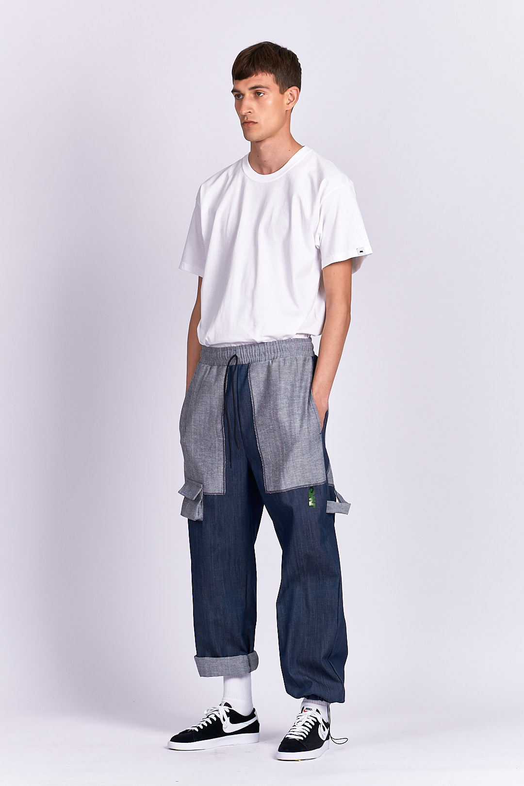 PRODUCT DETAILS Jeans material Drawstring waistband Designed to look baggy Ankle drawstring Functional back/side pockets Mini front pocket PVC owl logo detail
