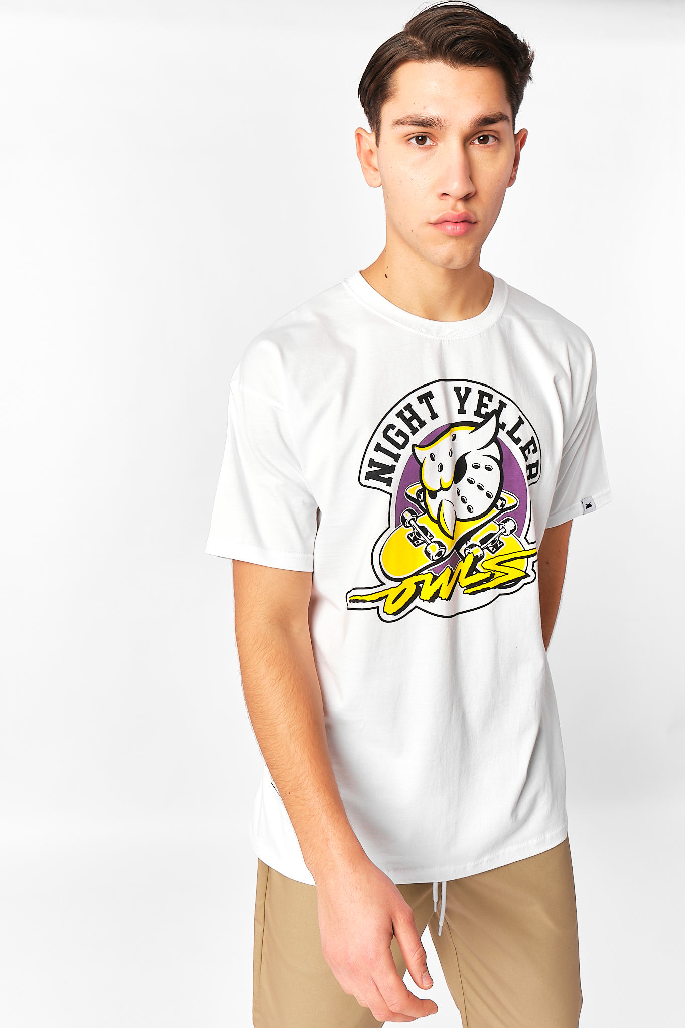 T-SHIRT WHITE NIGHT YELLER OWLS